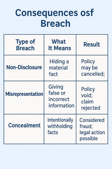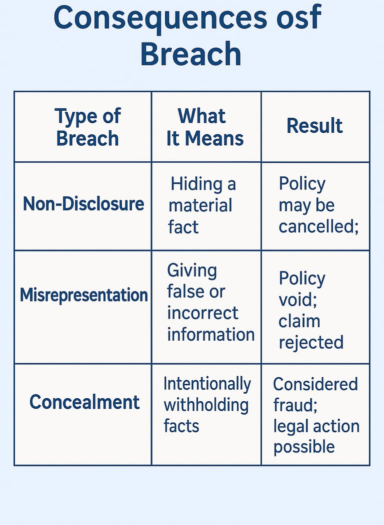 If such facts are hidden, it’s called non-disclosure or misrepresentation — and the insurer may reject claims or cancel the policy.